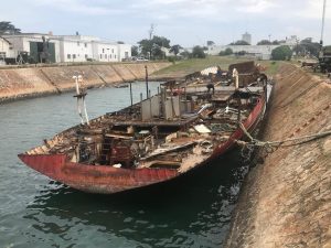 El BP Magritte que esta siendo desguazado en el varadero de la Base Naval Mar del Plata, va quedando reducido a solo la obra viva del mismo.