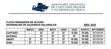 Con este acuerdo cerrado quedan finalizadas las negociaciones salariales para las distintas escalas que componen las tripulaciones de los buques pesqueros fresqueros de altura, teniendo en cuenta que en el próximo mes de septiembre las partes volverán a reunirse y evaluar la marcha de la inestable economía de nuestro país, donde se determinará si se continúa en la misma senda salaria o bien se deberán realizar nuevas modificaciones para evitar la pérdida de poder adquisitivo, inevitable por estos días inflacionarios.