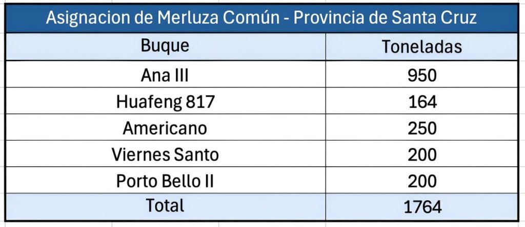 En este caso, el CFP aprob贸 la asignaci贸n de 1.764 toneladas de merluza com煤n, distribuidas de la siguiente manera: