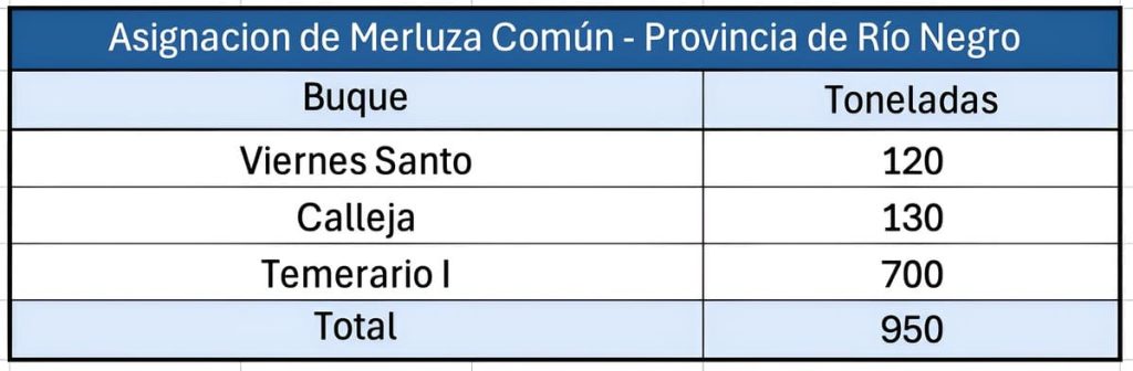 Se asignaron 950 toneladas de merluza com煤n, distribuidas entre los siguientes buques: