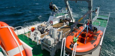 Una vez que el helic贸ptero se posicion贸 sobre el Xin Shi Ji No.91, se iniciaron las maniobras de rescate. En un operativo de alta complejidad, el personal de Prefectura Naval Argentina descendi贸 una canasta sanitaria, donde se coloc贸 al tripulante y se lo iz贸 lentamente.