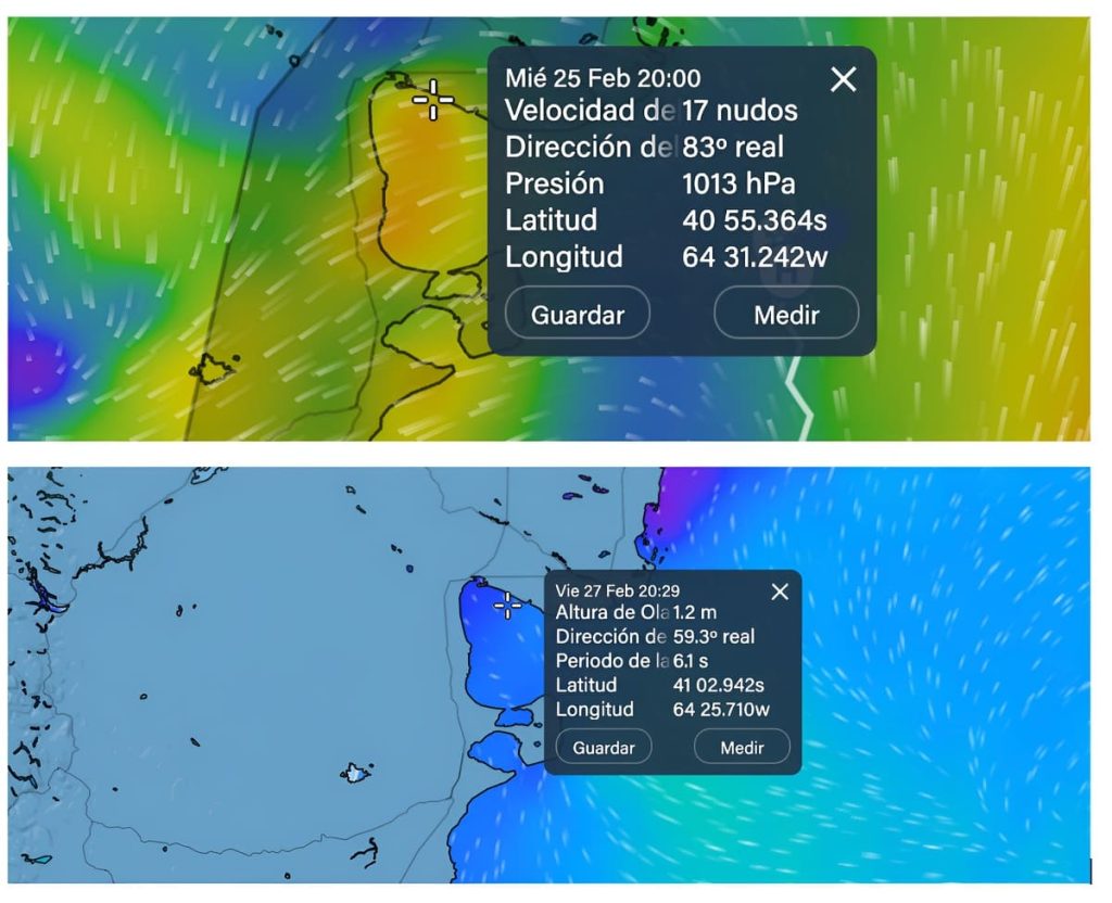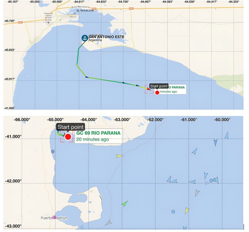 En paralelo, la actividad registrada en el área portuaria aportó un dato de relevancia operativa. La Prefectura Naval Argentina dispuso el despliegue de medios de búsqueda y rescate desde el muelle de San Antonio Este y, a las 20:45, zarpó el guardacostas GC-69 Río Paraná, con dotación especializada a bordo, navegando a máxima velocidad hacia la posición del eventual siniestro (40°55´S 64° 37´W) que dista de 5 millas náuticas de la costa y a 13 millas náuticas directas al SE de Puerto San Antonio Este. El escenario continuaba siendo confuso en cuanto al número de personas directamente afectadas; sin embargo, en el rol de zarpada figuraría consignada una dotación total de cinco tripulantes.