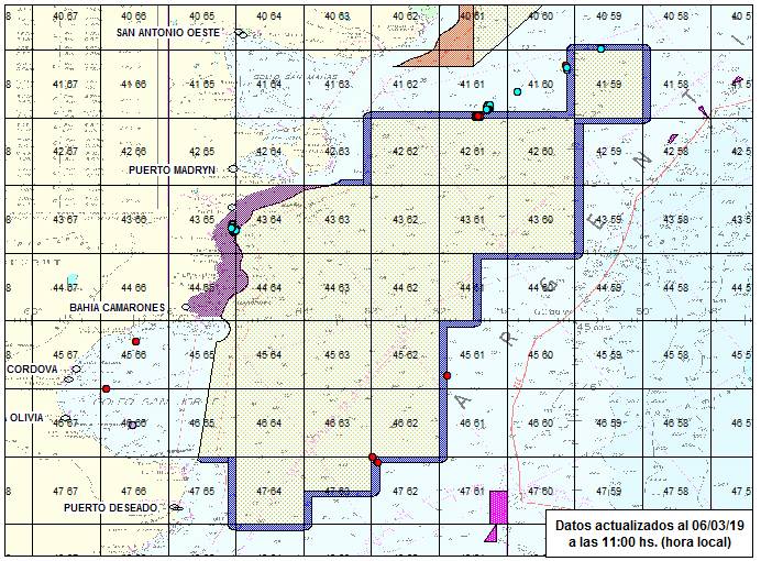 Se ubican sobre los cuadrantes estadísticos estadístico 4161 y 4160 principalmente. La imagen del control satelital los muestra distribuidos en un área en la que para incursionar no es necesaria la autorización del Consejo Federal Pesquero.
