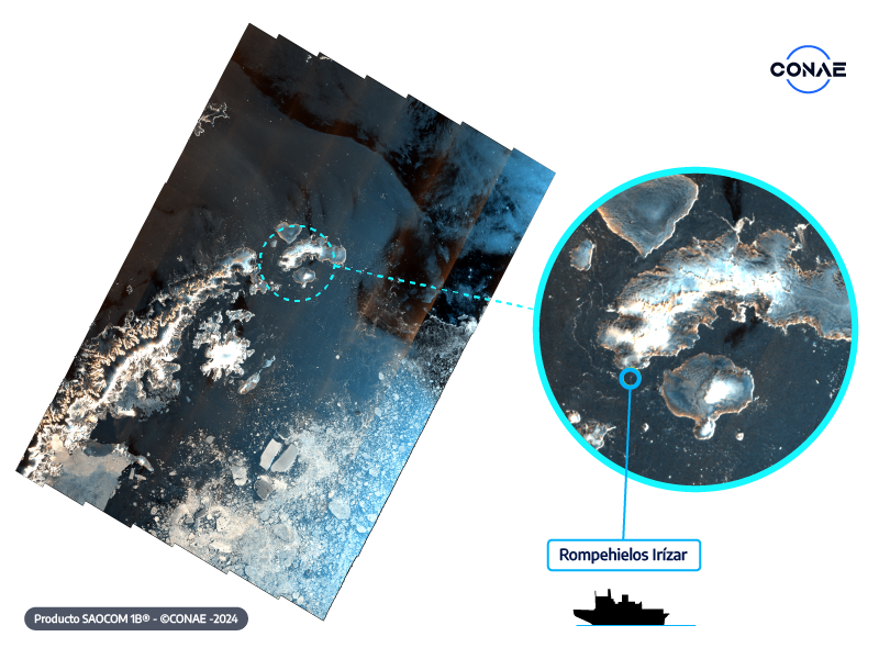 La Comisión Nacional de Actividades Espaciales (CONAE) tiene activa presencia en la Antártida a través del monitorio de los hielos australes a través de satélites, tal el caso del SAOCOM 1, el cual está brindando permanentemente información al rompehielos ARA “Almirante Irizar” en su derrotero durante la Campaña Antártica de Verano.
