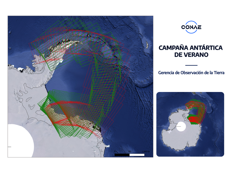 En la actual Campaña Antártica de Verano, la CONAE comenzó a planificar y enviar imágenes desde mediados de diciembre de 2023 con los satélites SAOCOM 1, estimándose continuar con la planificación y enviando imágenes hasta mediados de abril de 2024 como hemos mencionado, con una importante cobertura de 350 kilómetros de ancho por 445 kilómetros de largo y una resolución espacial de 50 metros por cada imagen.