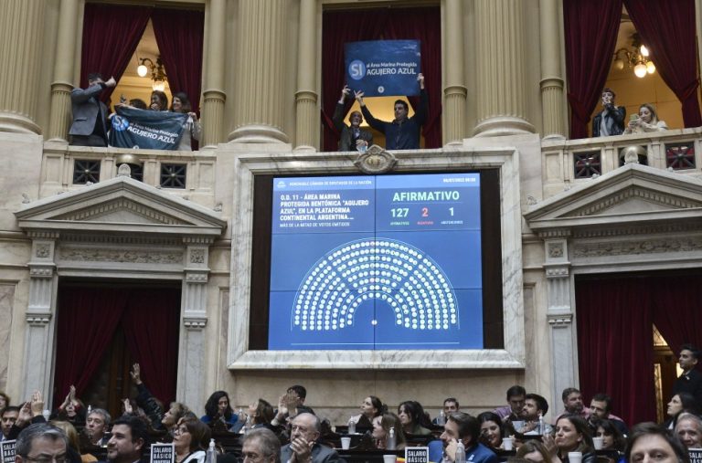 La protecci贸n bent贸nica que promueve el 谩rea propuesta permitir铆a por ejemplo la conservaci贸n de un sistema de ca帽ones submarinos en el 谩rea del talud; el cuidado de especies bent贸nicas vulnerables, constructoras de complejas estructuras tridimensionales que generan espacios de refugio y condiciones para la reproducci贸n y cr铆a de otras especies, as铆 como la protecci贸n del 煤nico sector de plataforma, con profundidades menores a los 200 metros, m谩s all谩 de las 200 millas n谩uticas. La sesi贸n en el Congreso Nacional tom贸 ribetes de tensi贸n como mencionamos ya que en medio de un pasaje, el presidente del bloque del Frente de Todos, Germ谩n Mart铆nez, tom贸 la palabra para comunicar el rechazo del regreso del proyecto a comisi贸n: 鈥渘o vamos a acompa帽ar el pedido que realiz贸 el diputado L贸pez鈥, se dirigi贸 a los gritos, a lo que Cecilia Moreau reaccion贸 tambi茅n con vehemencia y le respondi贸: 鈥済u谩rdate las malas palabras, si est谩s nervioso, saca los nervios en otro lado鈥.