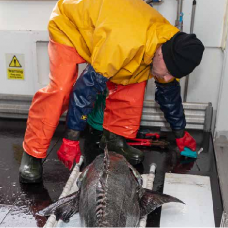 Expertos en pesca de palangre sostenible, Argos Froyanes utiliza técnicas innovadoras para minimizar la alteración del medio ambiente y evitar capturas accidentales. Cada pez se procesa manualmente a bordo, garantizando la trazabilidad de cada caja de pescado hasta el día y lugar de captura, lo que eleva los estándares de la industria.