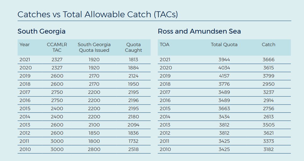 La experiencia de la empresa en la administración de recursos humanos se refleja en la incorporación de 22 Oficiales con 264 temporadas combinadas de pesca en las Islas Georgias del Sur, 403 temporadas de pesca de merluza negra y 139 mareas en el mar de Ross. Además, 13 contramaestres con más de 172 mareas operativas en las mismas aguas, 311 temporadas de pesca de merluza negra y 139 mareas en el mar de Ross garantizan que la tripulación produzca pescado terminado de la más alta calidad para sus clientes.