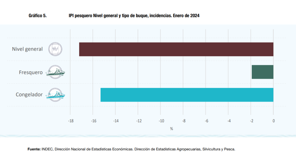 El Instituto Nacional de Estadística y Censos de la Argentina publicó el Índice de Producción Industrial Pesquero Enero 2024, el que muestra una variación positiva del 8% respecto al mes de diciembre último, mientras que el índice de la serie tendencia-ciclo registra una variación positiva del 0,8% respecto al mes anterior.