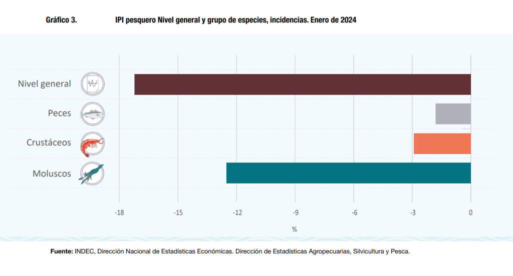 El apartado sobre el “Grupo de Especies”, destaca que en enero de 2024, el grupo “Peces” registró una caída de 18,6% respecto a igual mes del año anterior.
