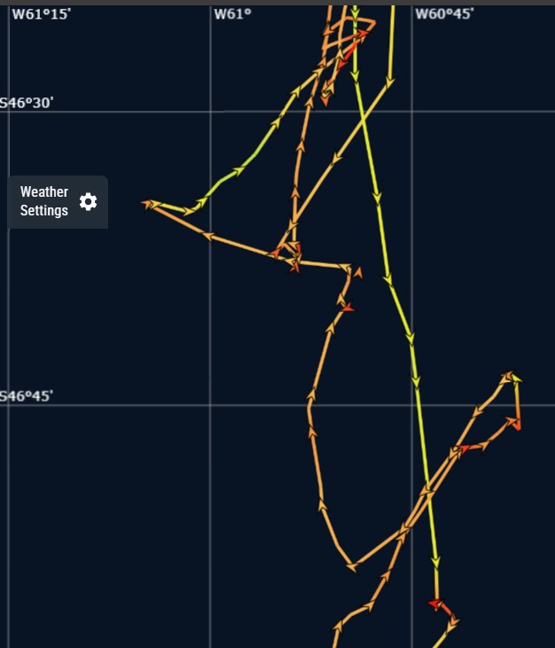 El personal realizó un análisis pormenorizado de los movimientos del buque a través del nombrado sistema, cuyas prestaciones permiten obtener, desde una única plataforma, toda la información disponible relativa a movimientos, datos técnicos y administrativos de los buques que se encuentran navegando por el mundo, por lo que se advirtió que durante su derrota el mismo circuló a una velocidad inferior a seis nudos dentro de los espacios marítimos bajo jurisdicción nacional.