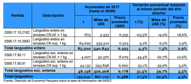 Las exportaciones de langostino sumaron 133 mil toneadas por 867,1 millones entre enero y septiembre, superando los millones hacia octubre.