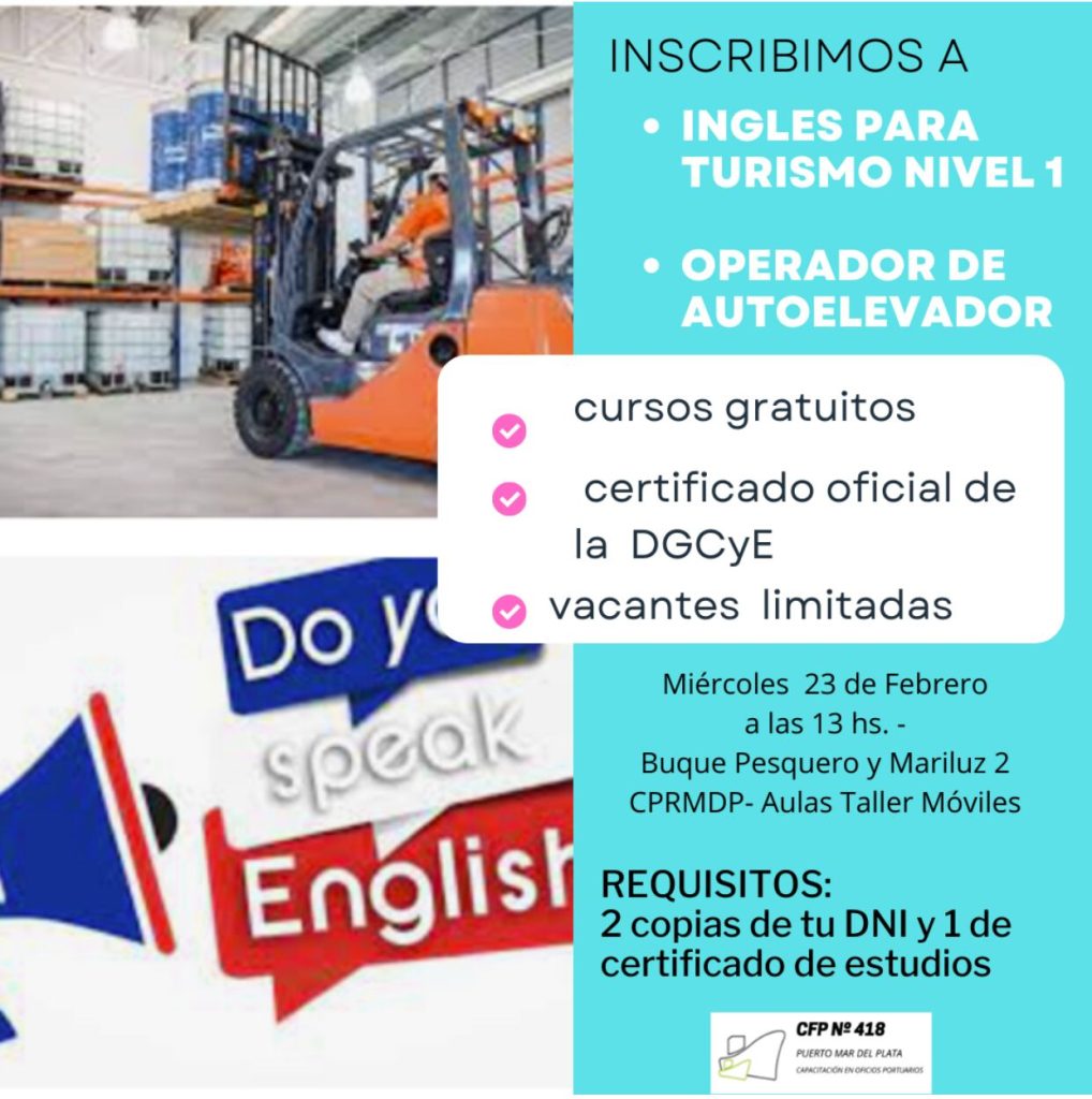 Una nueva serie de cursos son dictados por el Consorcio, que tienen el fin de capacitar a los futuros cuadros laborales. Curso de Ingles y operador de autoelevador.