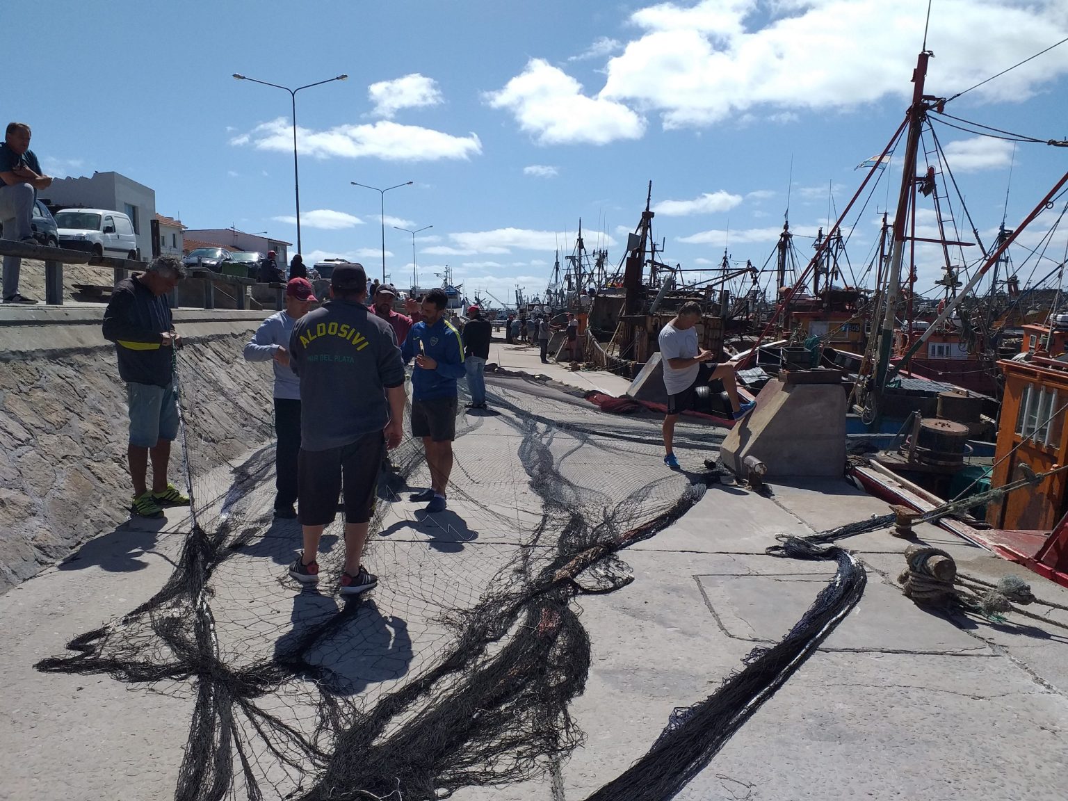 A pesar de lo diezmada de la flota de lanchas históricas amarillas, el receso como consecuencia del viento reinante, exteriorizooo una de las mas lindas y tradicionales postales de la ciudad. El hombre de mar arreglando sus redes.