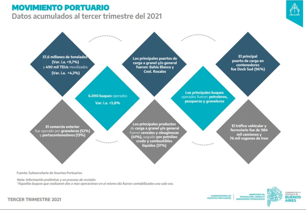 Mediante un monitoreo permanente de puertos de la provincia, la información conduce a una mayor actividad en todos los puertos provinciales. BahÃa Blanca, el más activo; Mar del Plata, más de 409.000 toneladas de pescado movilizada los 9 primeros meses de año pasado.