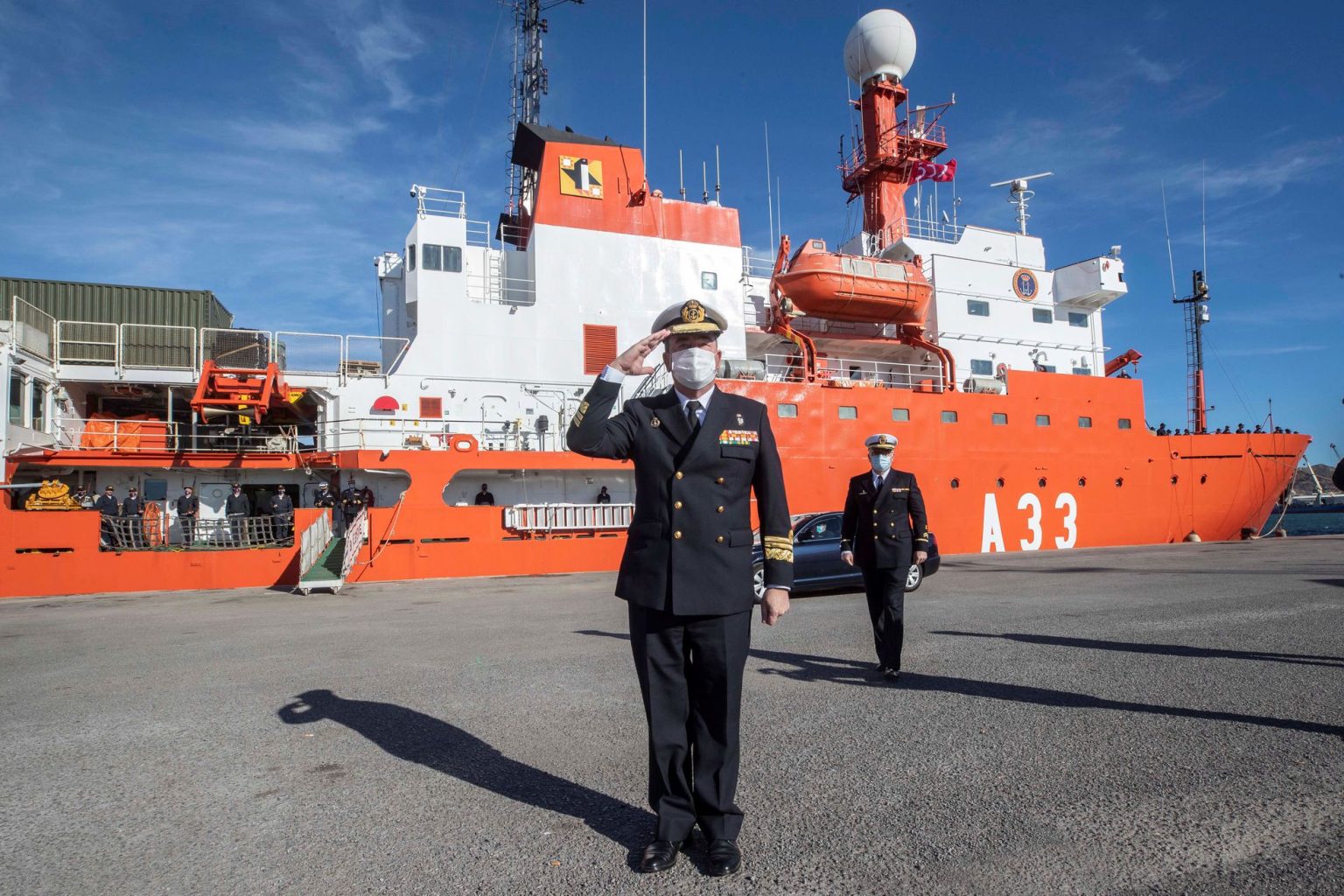 Desde la ciudad marÃtima de Cartagena, España, zarpó el 16 de diciembre del pasado año, el Buque de investigación oceanográfico, Hespérides, de bandera española. El mismo, realizando la 35° Campaña Antártica de ese paÃs, recaló ayer, en los muelles de la BNMDP.