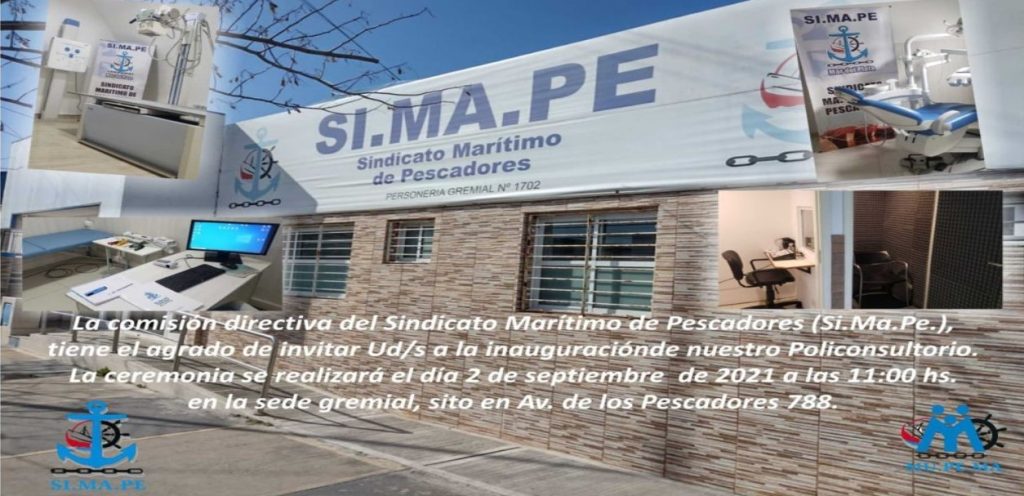El Sindicato Mar铆timo de Pescadores cumple un nuevo aniversario de su fundaci贸n, 21 a帽os y lo festeja inaugurando un moderno policonsultorio, hoy 2 de septiembre a las 11hs en su sede gremial Avda. de los Pescadores 788, puerto Mar del Plata.
