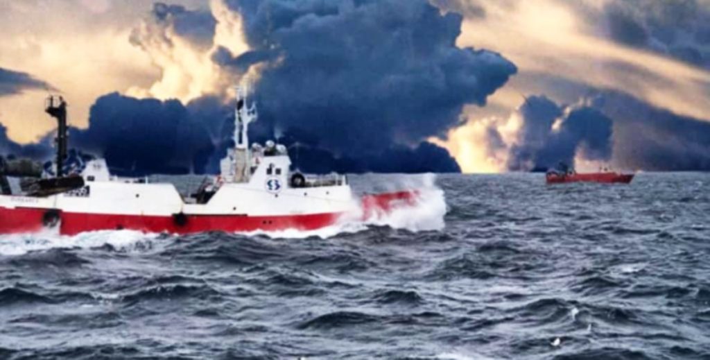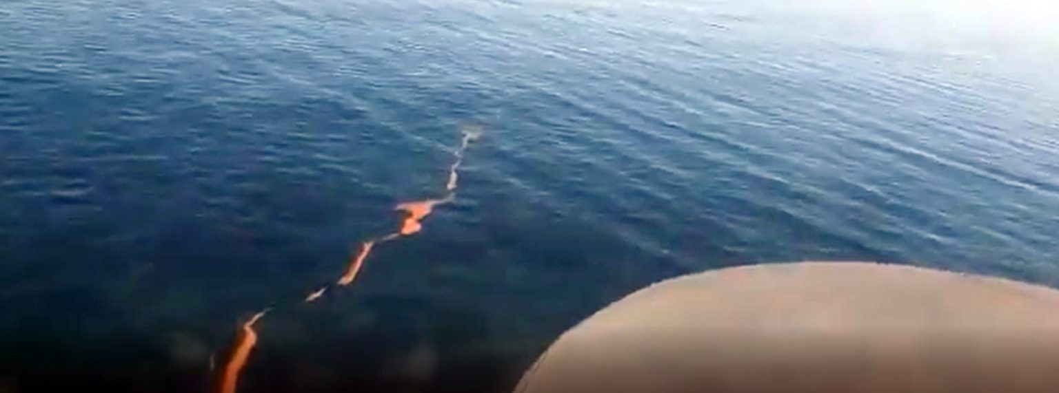 Un video de Prefectura muestra manchas sobre la superficie a unas 111 millas náuticas de Bahía Blanca. Los ocho tripulantes rescatados regresaron a sus casas.