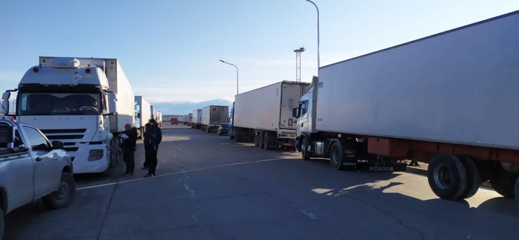 Representantes de los trabajadores cortan la circulación de camiones con langostino fresco en localidades patagónicas. El lunes marcharán en Mar del Plata.