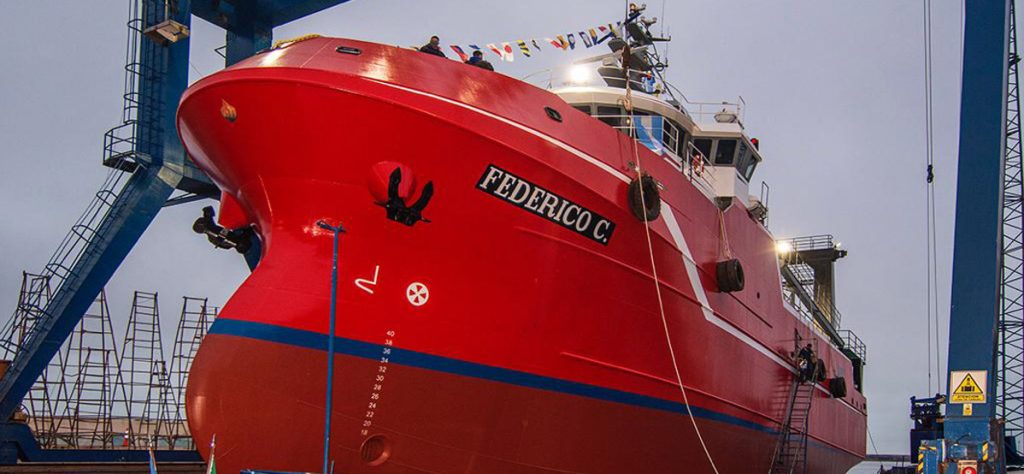 Desde el astillero destacaron la importancia de la botadura 134. Casi 40 metros de eslora y diseño propio. Demandó 75 mil horas hombre.