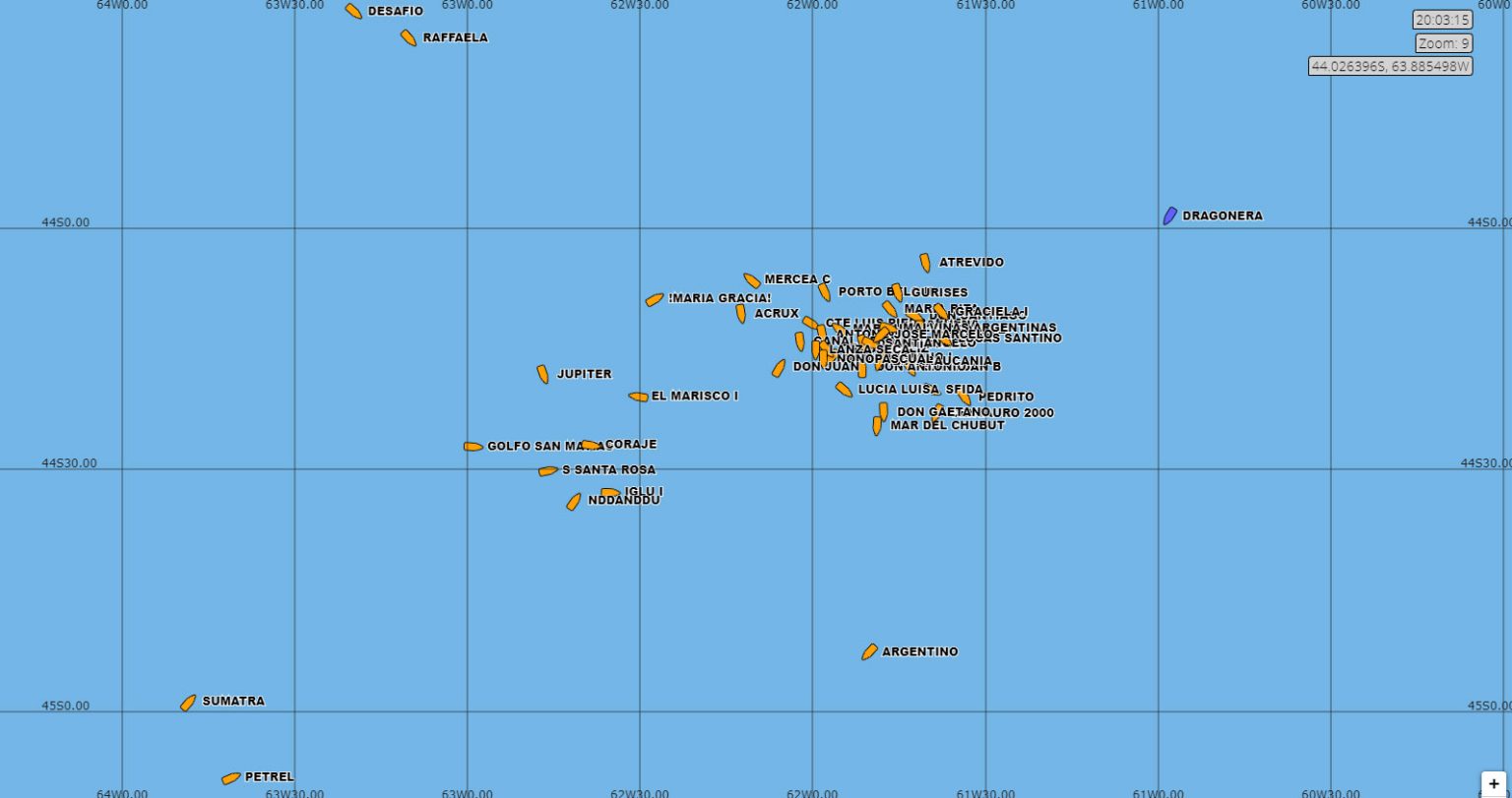 Se trata de una pequeña franja localizada sobre el paralelo 45°; aunque el grueso de la flota sigue operando al norte de ese límite.