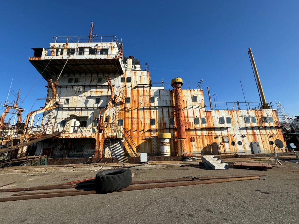 En el único astillero para embarcaciones de gran porte del puerto de Mar del Plata, se asiste a la draga de succión, Pinta.