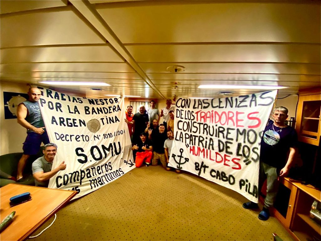 El Sindicato de Obreros MarÃtimos Unidos (SOMU) protesta por el impacto de la reforma sobre el transporte marÃtimo fluvial en Argentina.