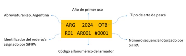 Este código deberá ser generado por la Autoridad de Aplicación de la Ley N° 24.922, y será asignado a cada equipo de pesca por la redera o el redero que lo fabrique o repare.