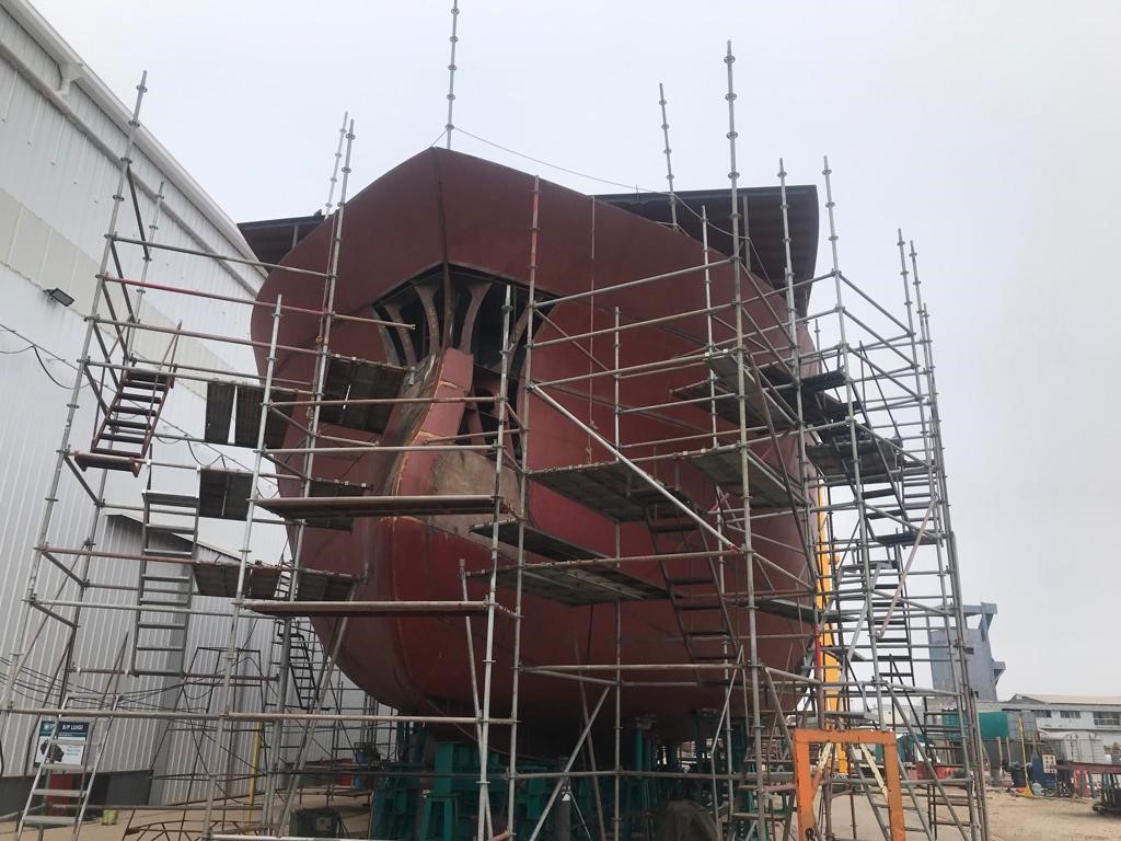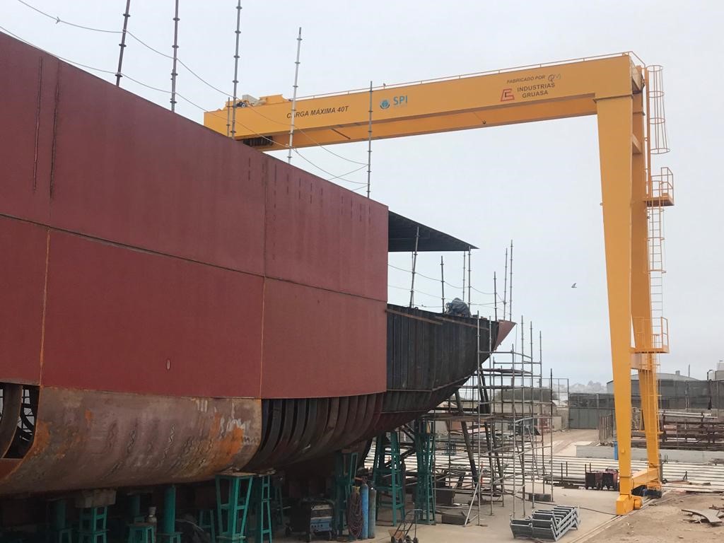 En la semana, SPI, incorporo un puente grúa de 40tn para la eficiencia y precisión en la colocación de la cabina y parte de toneladas de chapas que aún faltan sobre la cubierta.