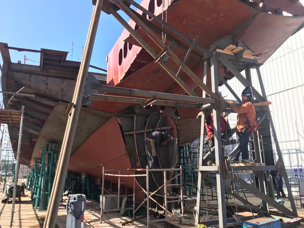 En la recorrida con Tony, que atentamente seguía cada soldadura y alineación de la popa central, codaste y salida del eje propulsor, le preguntamos, ¿qué se siente?, sin dudarlo miro y dijo “ es como hacer un hijo, verlo nacer y crecer, vengo todos los dias, es un diseño que fuimos a buscar a España entre los mejores diseñadores del mundo y vinimos a hacerlo acá, porque se puede hacer acá un barco así, creemos y confiamos en el potencial de nuestra ciudad y de nuestro país, por eso hemos decidido avanzar con la construcción de un nuevo buque pesquero que se incorporará a nuestra flota “.