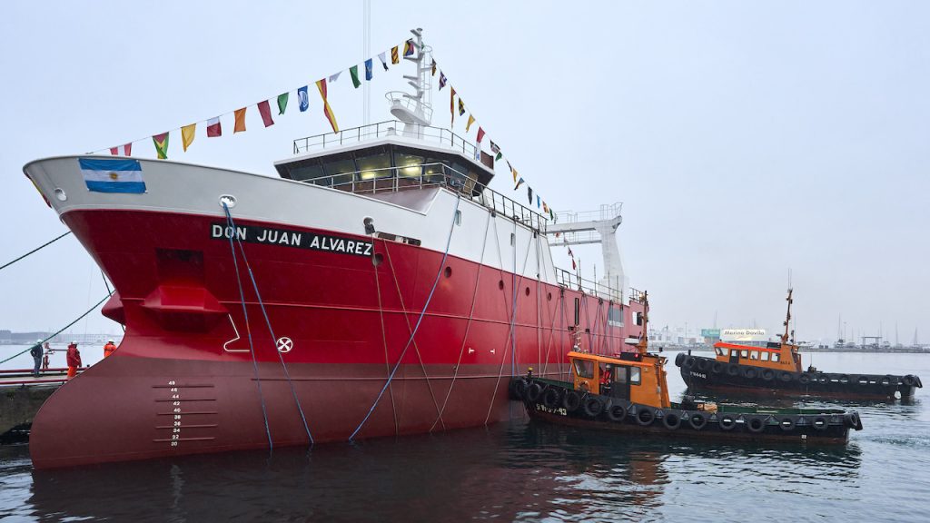 Para las operaciones de pesca, el Don Juan Álvarez emplea la técnica de arrastre con tangones, un método que incorpora dos equipamientos hidráulicas de tipo partido, diseñadas para mejorar la eficiencia y maniobrabilidad en la captura. En términos de propulsión, el buque está equipado con un motor principal de 1.400 kW y un alternador de cola de 600 kW, un sistema que, según el astillero, optimiza el consumo de combustible y mejora la eficiencia energética durante la navegación. Algo, que ya se experimentó en buques construidos en Argentina por Astilleros SPI.