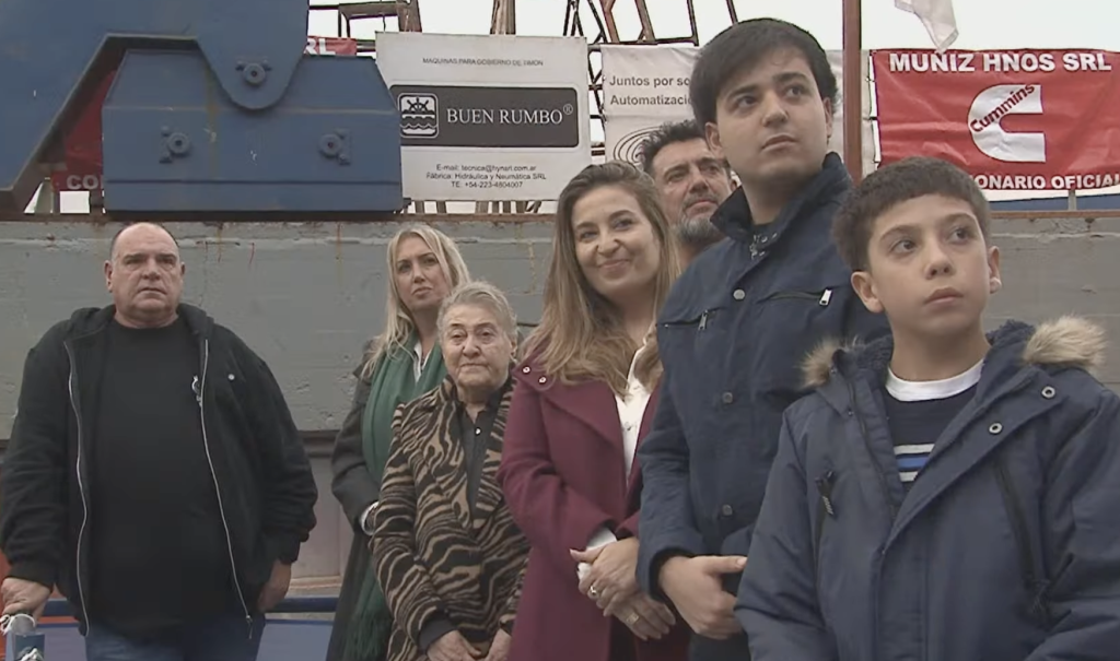 El acto contó con la presencia de familiares de Martella —su esposa, su hija Liliana, madrina del buque, su yerno y nietos—, además de representantes del sector naval y pesquero, autoridades y numerosos asistentes.