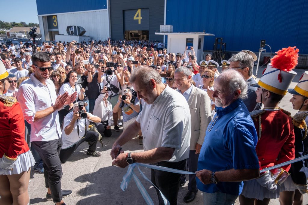 Luego de la botadura de la embarcación, los invitados se trasladaron a la impactante nave industrial, la que dará espacio a la construcción de buques de hasta 85 metros de eslora y que posee dimensiones impresionantes, teniendo su salida hacia el espejo de agua interior del puerto marplatense.
