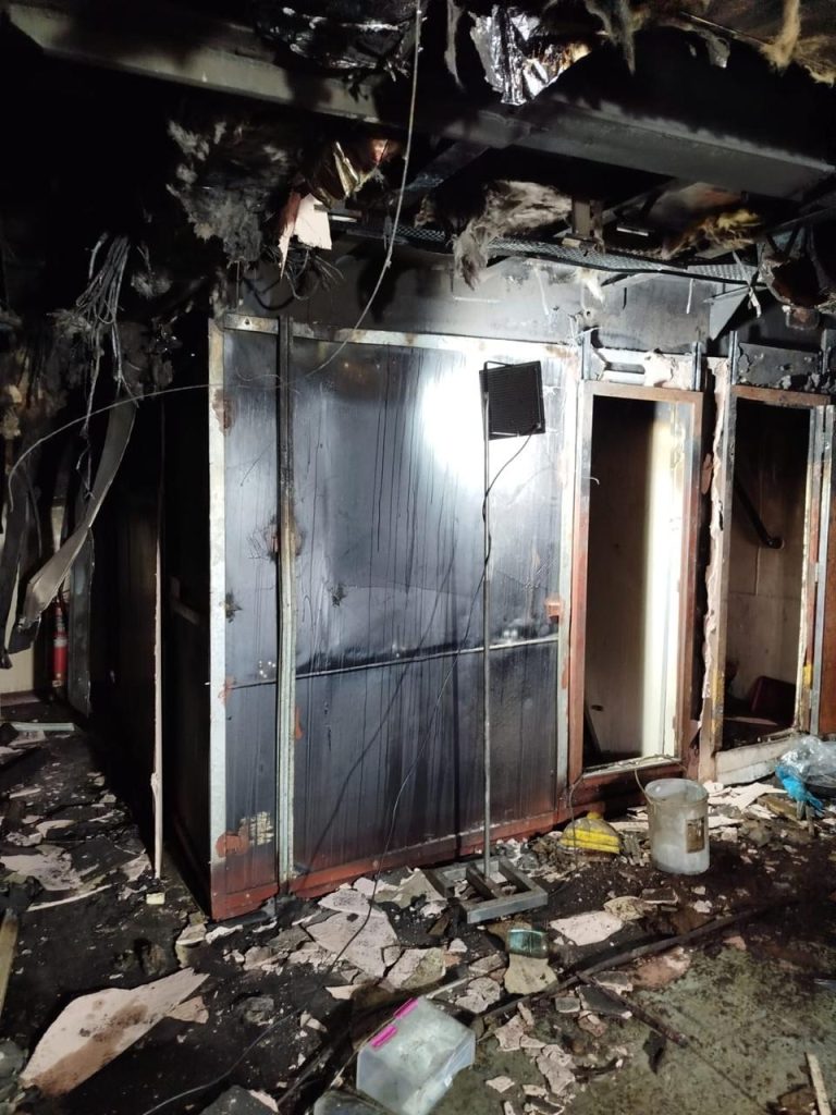 El fuego había sido controlado, pero las consecuencias eran evidentes. Las imágenes del antes de las reparaciones lo reflejan con crudeza; paneles metálicos retorcidos, cables fundidos, tabiques desintegrados por el fuego y un panorama desolador. La prioridad inmediata de Iberconsa era clara: restaurar la unidad y evitar el lucro cesante por inactividad operativa.