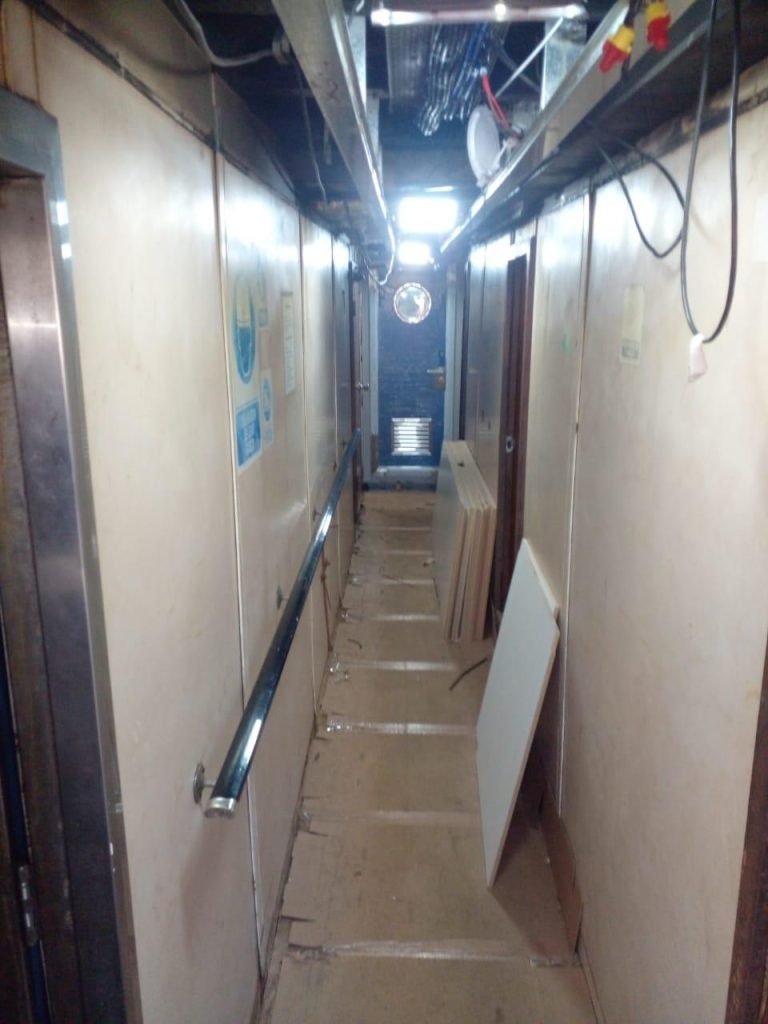 Las imágenes del después contrastan con las del siniestro; pasillos claros, nuevos paneles metálicos de acero inoxidable, puertas estancas, camarotes completamente reconstruidos y un ambiente que refleja orden, seguridad y confort al servicio de la tripulación.