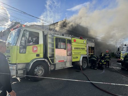 Descontrol y pánico: camión atmosférico se precipita y destroza frente de planta pesquera