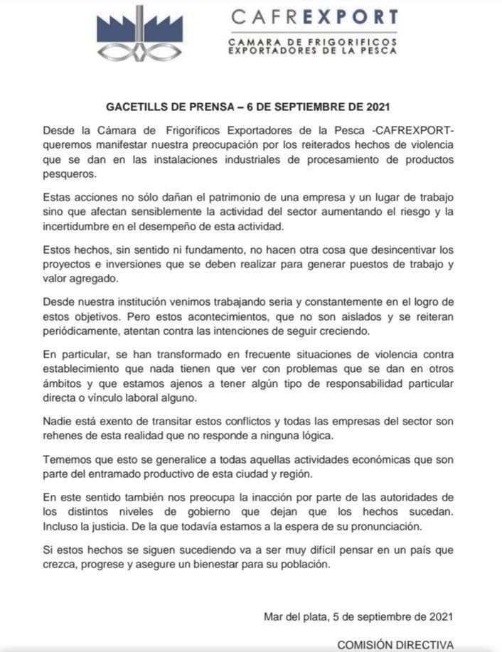 Cafrexport también se pronuncia diciendo que “tememos que esto se generalice a todas aquellas actividades económicas que son parte del entramado productivo de esta ciudad y la región”.