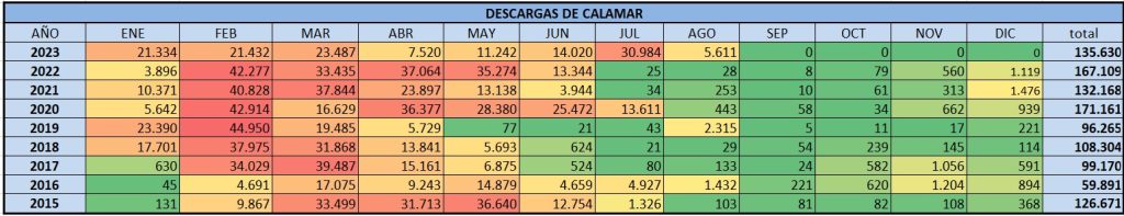 Con esta tendencia, el viernes 18 de agosto a partir de la hora 00.00, se cerrará la temporada de pesca de calamar, con el objetivo de propiciar la preservación del recurso.
