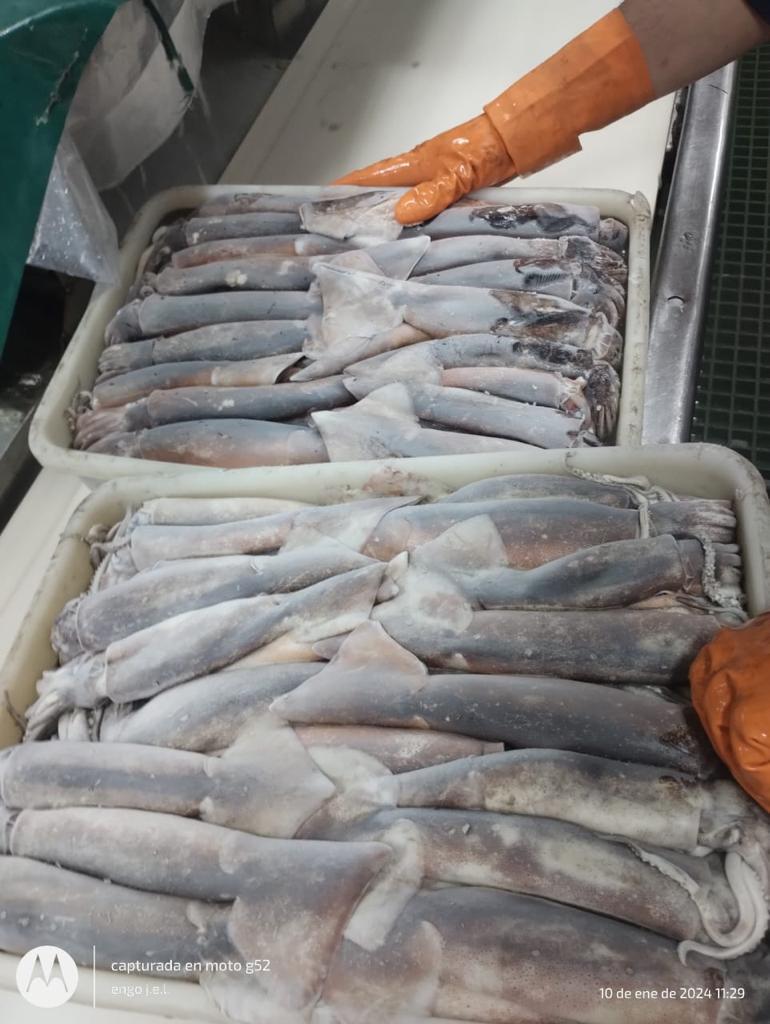 El calamar es de calidad comercial, de buen tamaño y pared, incluso mejor que el capturado el año pasado en la misma época y zona.