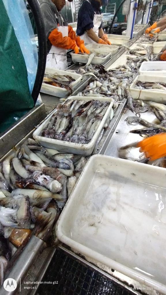 Lo concreto es que el calamar comenzó a dar los primeros indicios en el inicio de la temporada de calamar illex 2024 para poteros, sin embargo algunos congeladores tuvieron mejor fortuna con concentraciones de tamaño y calidad mejor. La foto de portada como las ut supra son de la planta de procesado de un congelador de porte que operó algo más afuera sobre la milla 195 en profundidades cercanas a 200m.