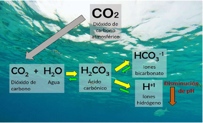 La acidificación es el proceso prolongado de la reducción del pH de los océanos, que se da por el intercambio de carbono con la atmósfera. Esto hace que los océanos sean los sumideros de carbono más importantes del planeta.