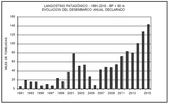El langostino dio otra muestra de abundancia durante este 2016. La estadística elaborada por la Subsecretaría de Pesca de la Nación refleja que hasta el pasado 24 de octubre se habían desembarcado 136.776 toneladas.