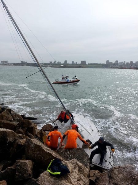 Momentos dramáticos se vivieron en la tarde del sábado sobre la Escollera Sur del puerto de Mar del Plata, a causa de una embarcación a vela que habÃa encallado.