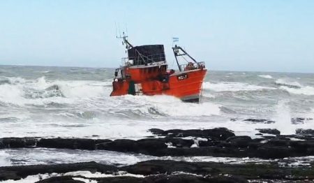 Encalló una embarcación en la provincia del Chubut. Pertenece a la flota amarilla de Puerto Rawson. Es el BP Moly que despues de enredar la red en la hélice quedó con capacidad de maniobra restringida. El viento lo derivó hacia las piedras. Se espera una pleamar y que el viento de tierra ayude junto a un remolque desde el mar adentro.