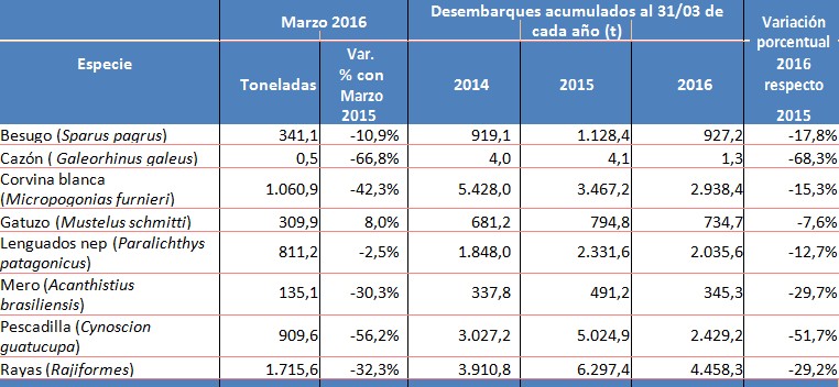 Durante los primeros tres meses de 2016 las principales especies que componen el variado costero tuvieron una merma en los muelles. Al menos así lo reflejan los números de la Subsecretaría de Pesca de la Nación.