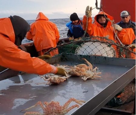 La centolla (Lithodes santolla) y el centoll贸n (Paralomis granulosa) son las dos especies de crust谩ceos que se pescan actualmente desde el norte del Golfo San Jorge, hasta el Canal Beagle, esta 煤ltima, a trav茅s de la flota pesquera artesanal utilizando trampas de fondo (pesca pasiva) fuera de la veda temporal.