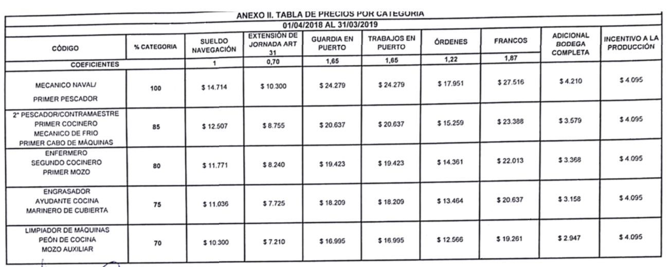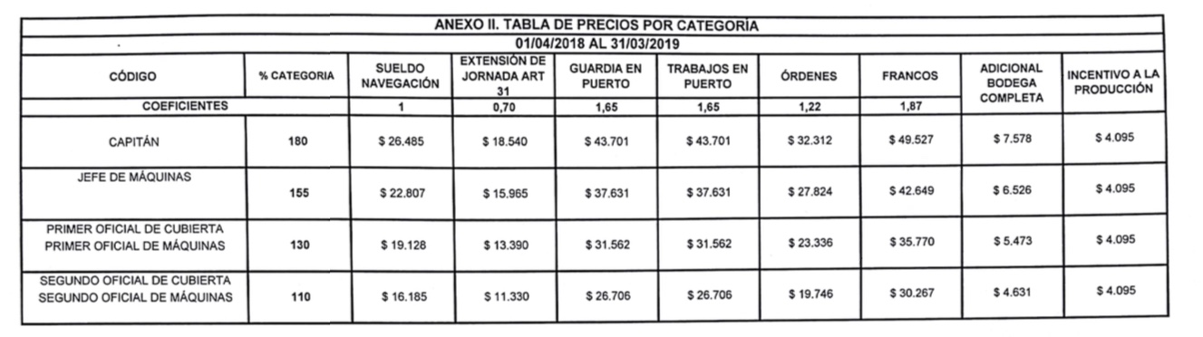 En el caso de los marineros, se trabajó en el marco de los convenios 579/2010 y 580/2010 con un incremento de valores del Anexo II (tablas de precios por categoría) que serán aplicados desde abril y tendrán vigencia hasta marzo de 2019.