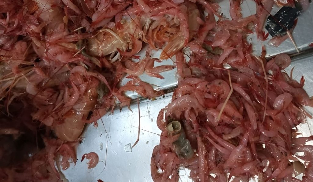 Las capturas mostraron una marcada irregularidad, alternándose sectores con ejemplares de talla comercial con amplias zonas carentes de recurso o con elevada fauna acompañante. Un caso ilustrativo fue el de un buque operando en el sector sur, cuyas maniobras concluyeron con una descarga de langostino adulto mezclado, con alto porcentaje de Peisos petrunkevitchi y presencia de juveniles entremezclados, signo de un cuadro biológico heterogéneo y de bajo valor comercial, afectado por las anomalías meteorológicas reinantes.