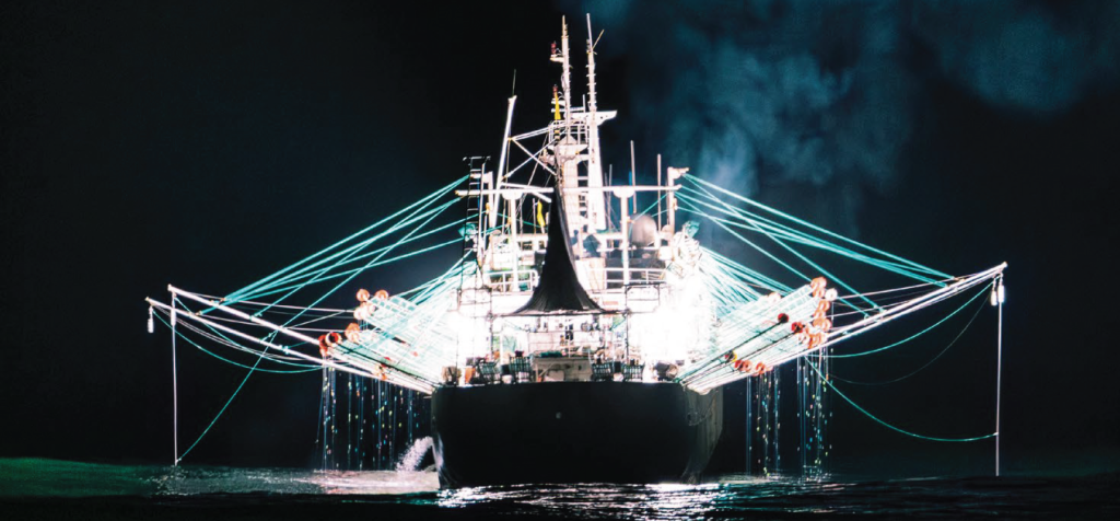 Las luces utilizadas para atraer a los calamares son tan potentes que forman, en la superficie del mar, un resplandor visible desde los satélites. Esta concentración, que algunos describen como “una ciudad flotante”, contrasta con el régimen regulado dentro de aguas argentinas, donde rigen licencias, monitoreo electrónico y cierres de temporada.