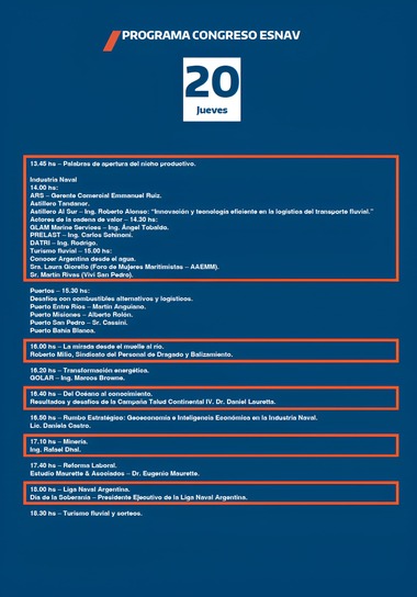 El segundo día estará centrado en la industria naval y los distintos actores de la cadena de valor. Astilleros, empresas proveedoras, especialistas en logística fluvial y referentes del turismo náutico presentarán sus perspectivas sobre los desafíos actuales del sector y las oportunidades que se abren a nivel regional.